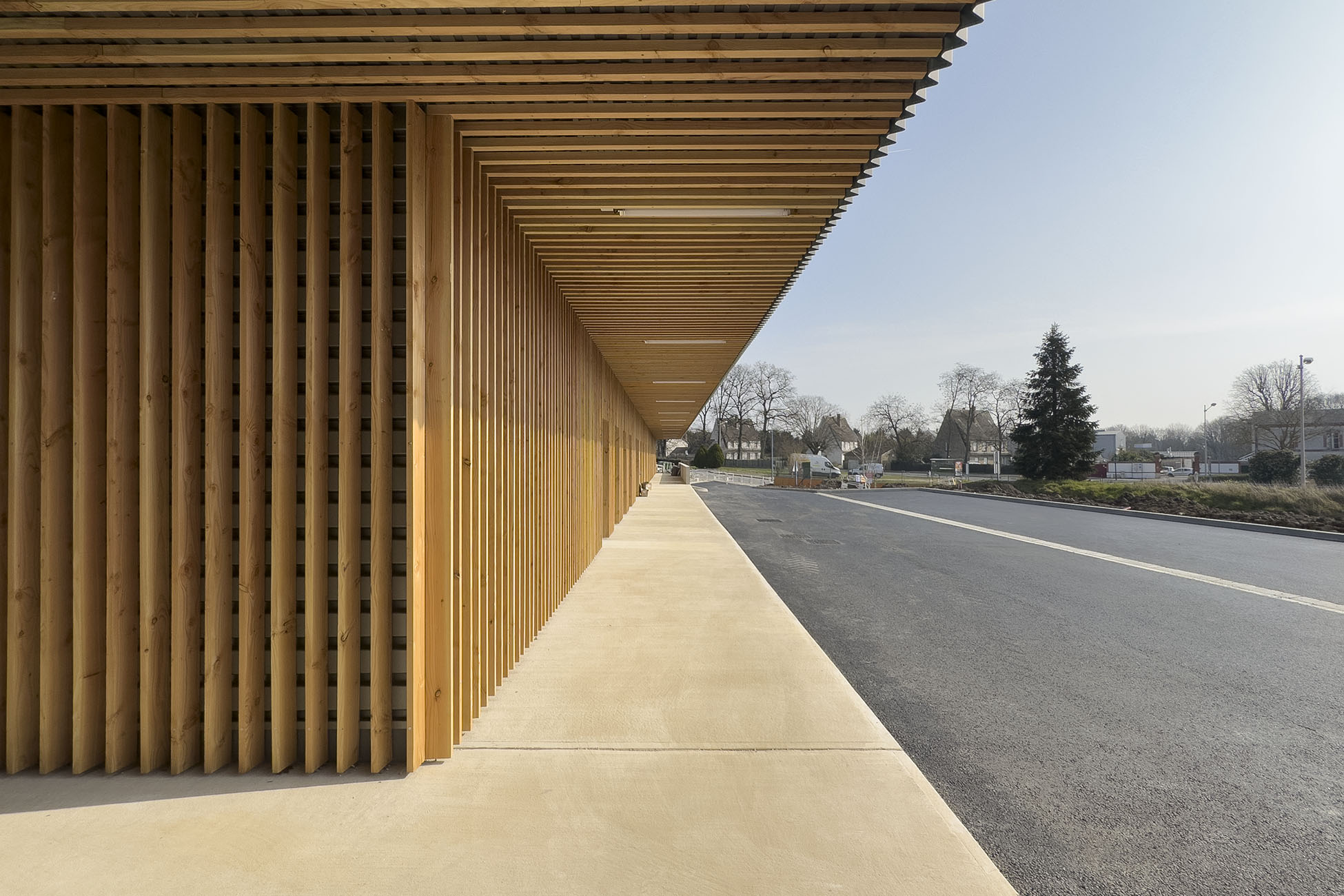 Le projet se distingue par un principe structurel mixte associant une infrastructure en béton sur pieux et une superstructure en ossature et charpente bois. Cette combinaison permet d’apporter à la fois la robustesse nécessaire en infrastructure et la légèreté recherchée en superstructure, tout en contribuant au confort d’usage et à la création de volumes libres adaptés au programme hospitalier.